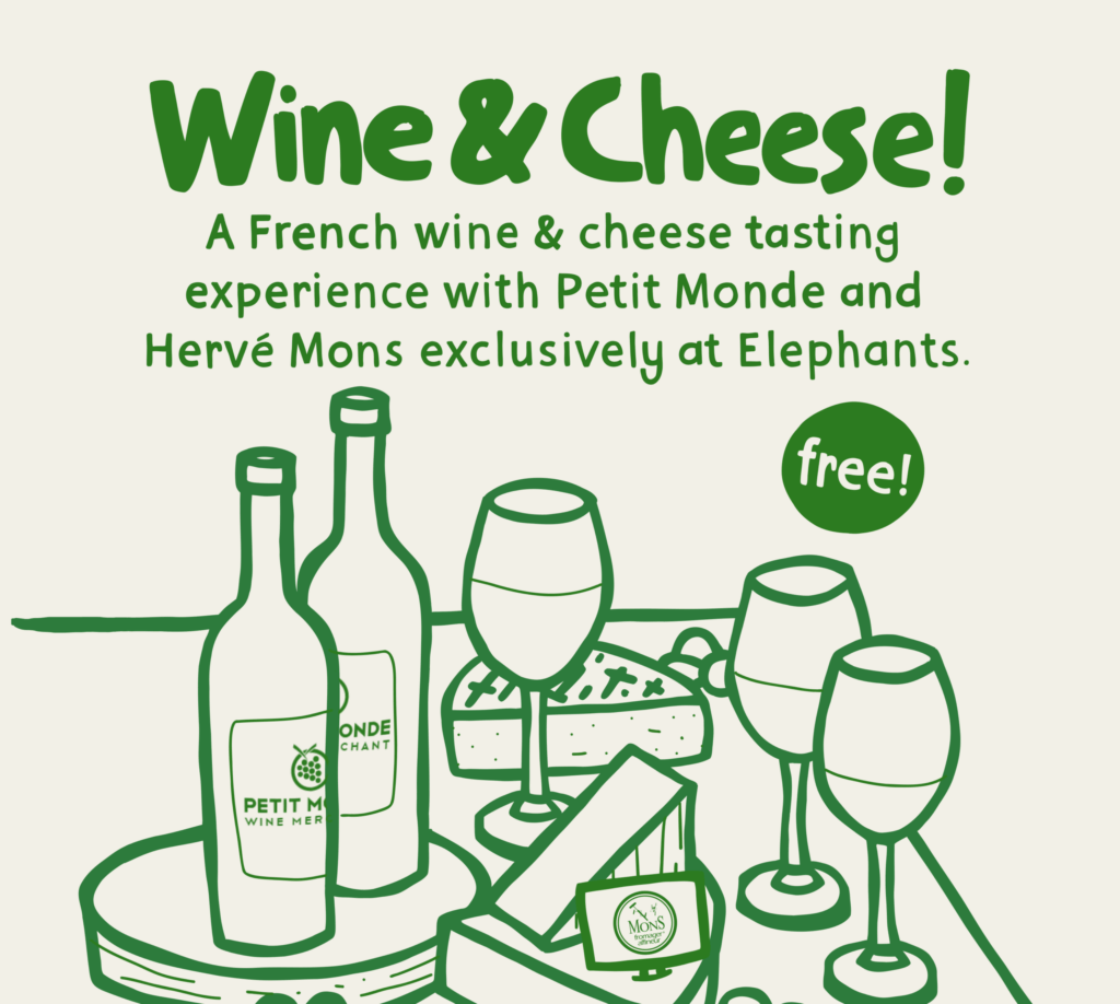 Join us for a French wine & cheese tasting experience with Petit Monde and Hervé Mons, exclusively at Elephants. We...