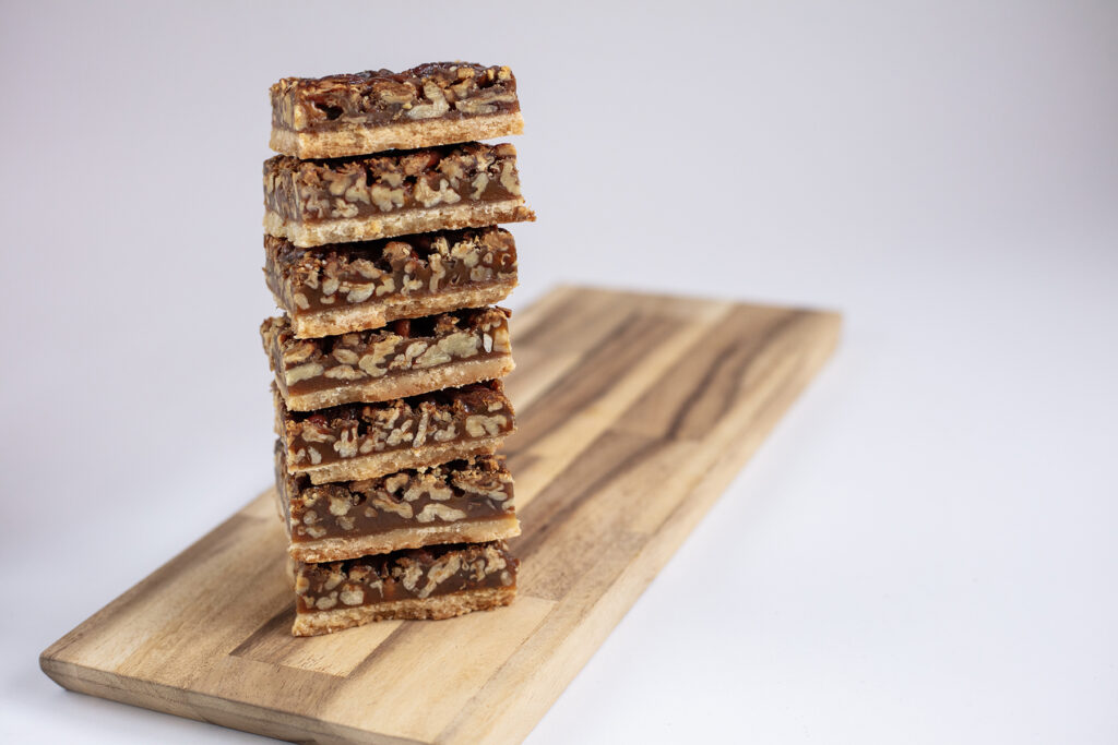 Shortbread crust with a honey caramel topping with walnuts for the perfect crunch.